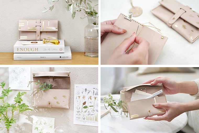 直線状にカットした部分がスタンドになるので、角度を調整しながら、自立するように全体の形を整えます。