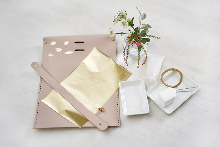 必要な道具が揃い、針や糸を使わずに作れるので、レザークラフトが初めての方でも安心して作れるキットになっています。華奢なショルダーストラップや金具使いなど、おしゃれなポイントがたっぷりです。