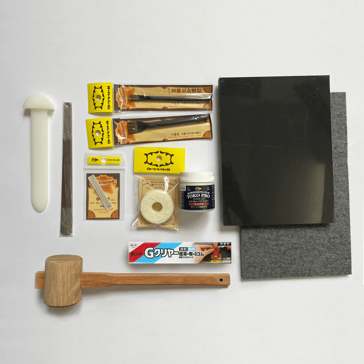 レザークラフトのステップアップにおすすめの、レザークラフト道具セットです。本格的なツールはもちろん、材料やキットまで手がけるレザークラフト界のパイオニア的存在で、国内シェアNo.1のクラフト社のセットなので、安心して使うことができます。