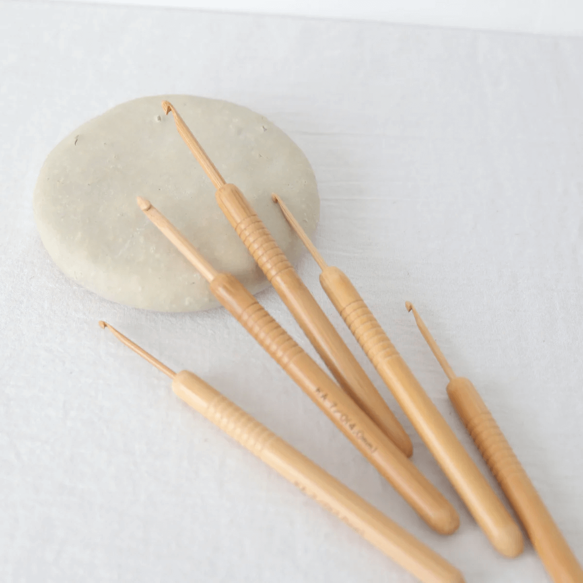 熟練の職人さんが一本ずつ丁寧に仕上げた、上質な竹製のかぎ針です。驚くほど軽くて手にしっくり馴染むのは、厳選された天然竹ならではの仕上がりになっています。針先が滑らかに磨かれているので、糸を拾う動作もスムーズです。