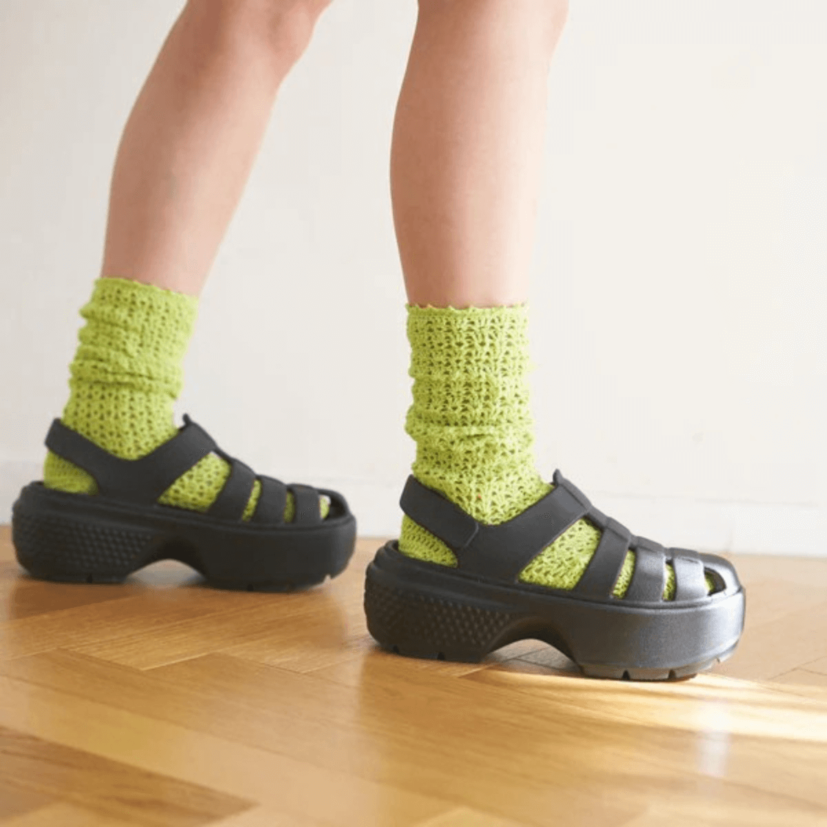 透かした柄がかわいい靴下が作れるかぎ針編みキットです。やさしい透かし模様が涼しげな「サマーソックス」と、ビーチサンダルにぴったりの「トングソックス」2種類のソックスが編めます。足元のおしゃれに合わせて楽しめるのが魅力です。