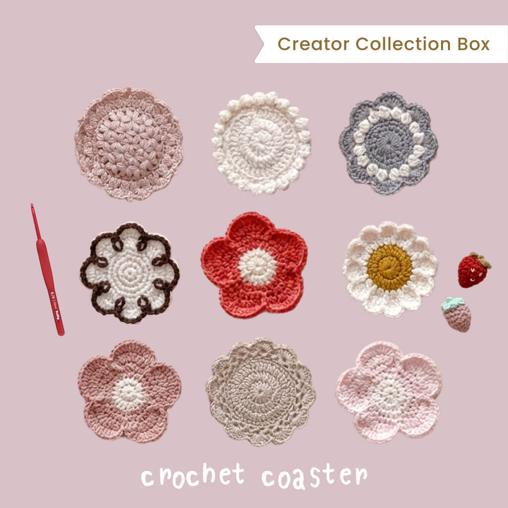 6つのデザインが作れるコースターキット|いちごクロッシェ