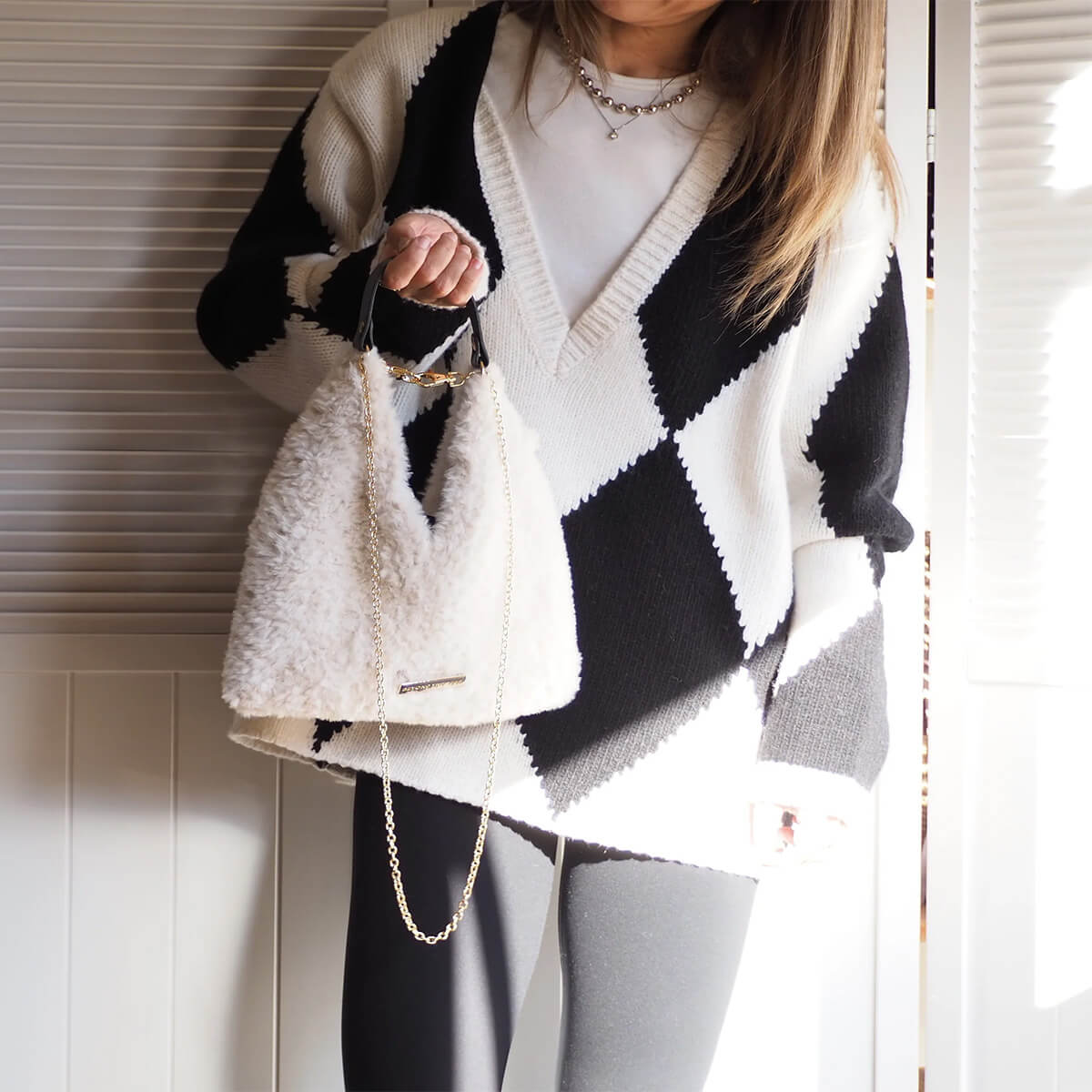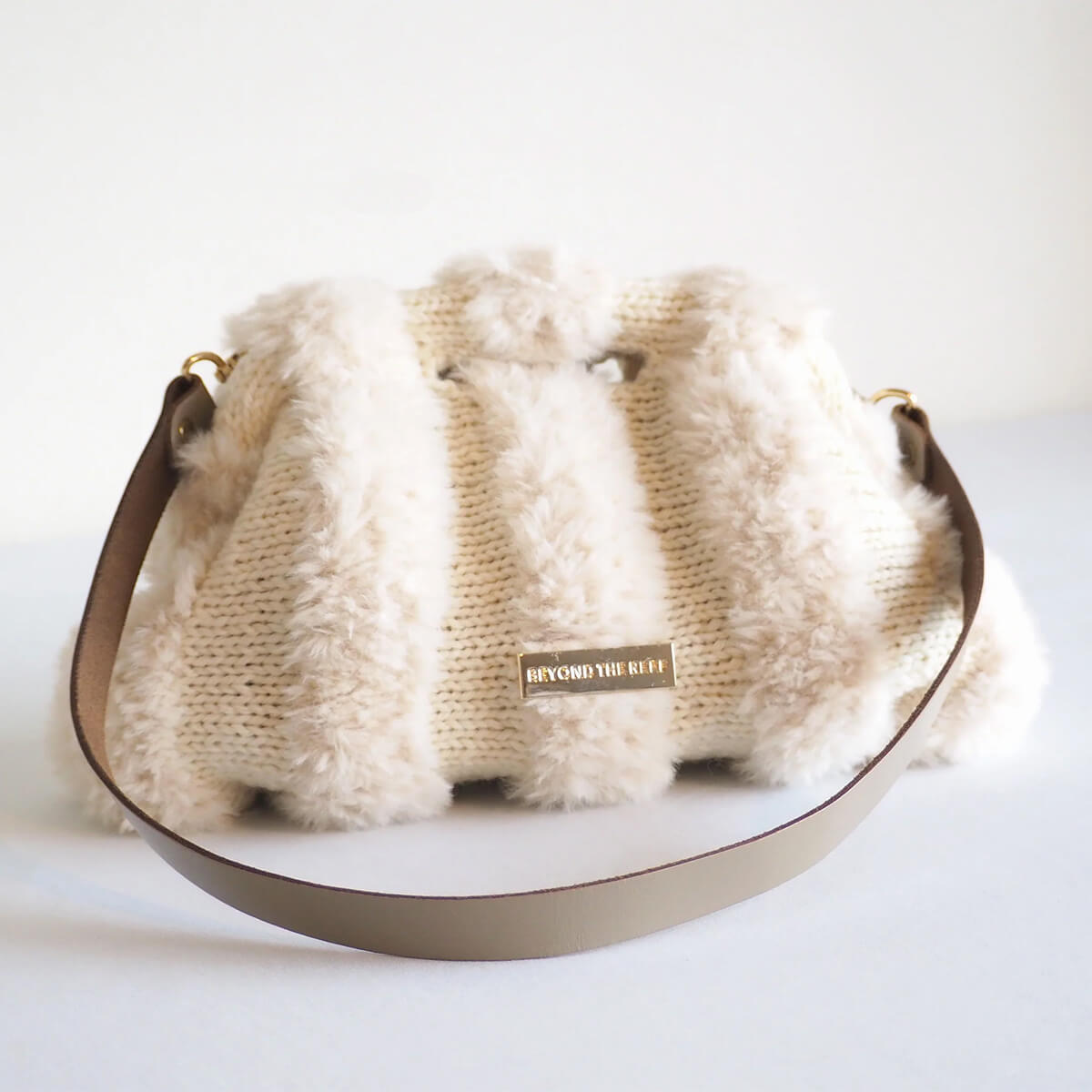 BEYOND THE REEF の原点でもある「ニットクラッチバッグ」が作れるキットです。ふわっふわモコモコで、手編みの魅力を最大限に引き出しながらも今のファッションに違和感なくはまるデザイン。クラッチ・ハンドバッグ・ショルダーと、3Wayでお楽しみいただけます。
