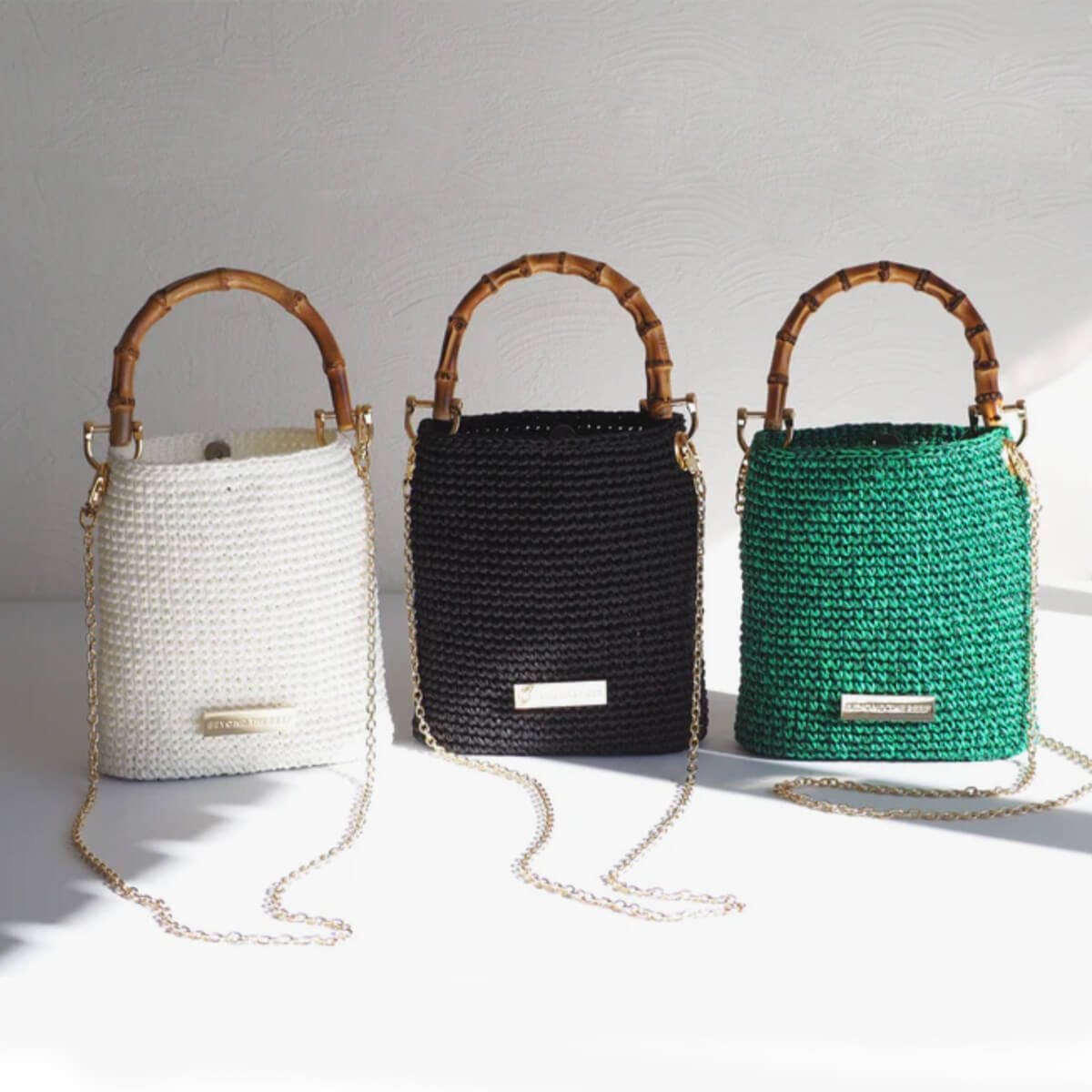 BEYOND THE REEFのおしゃれなミニバッグ Braid(ブレイド)が作れるキットです。トレンド感のあるバンブーハンドルやゴールドチェーンに、スマホとちび財布が入るジャストなサイズ感。ハンドメイドとは思えない素敵な作品に仕上がります。カラーも豊富に揃っています。