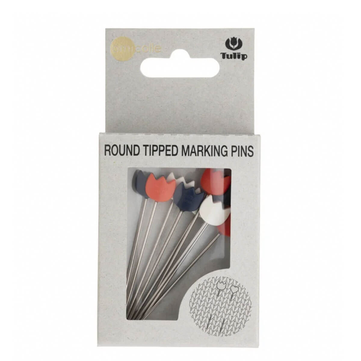 ポケット付け、袖付け、とじ、はぎなどの仮止めに便利な編み物まち針です。針先が丸いので、糸割れしにくいのが特徴。見ているだけでもかわいく、コレクションしたくなるアイテムです。