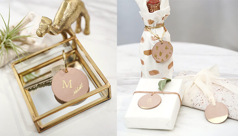 ポーチと同じ革で作ったまあるいチャームです。穴をあけてあるので、キーチャームやギフトのオーナメントにもなります。こちらも箔シートを使って自由にデザインできるのが嬉しいポイント。