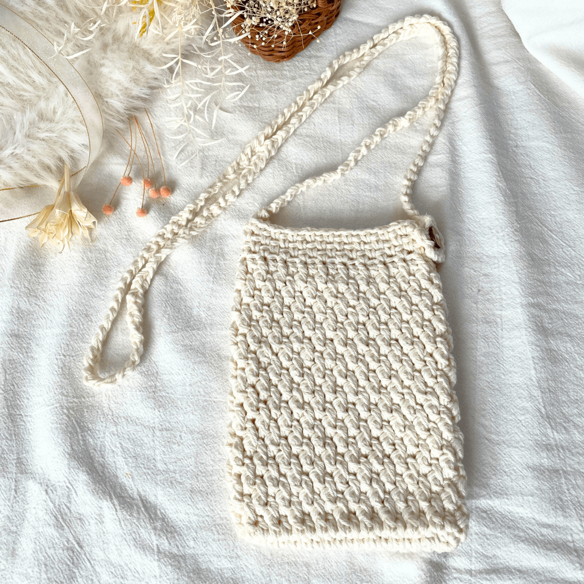 実用的なアイテムを作りたいなら、今人気のスマホショルダーがおすすめ。直線で編めるデザインが多く、自分だけのおしゃれを楽しめます。