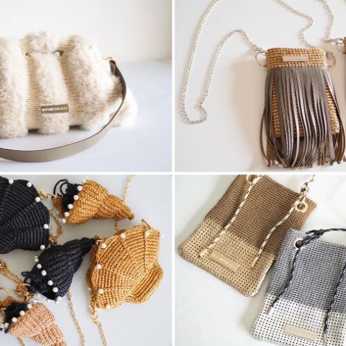 他にもモヘアで編んでふんわり可愛くしたり、麻糸で編んでウッドビーズをつけてアジアンテイストにしてみたり、極太の毛糸で編んでコースターにしてみたり。